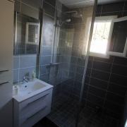 Remplacement d'une baignoire par une douche grande largeur. Remplacement du meuble vasque. Reprise des murs et rénovation de la faïence à l'intérieur de la douche